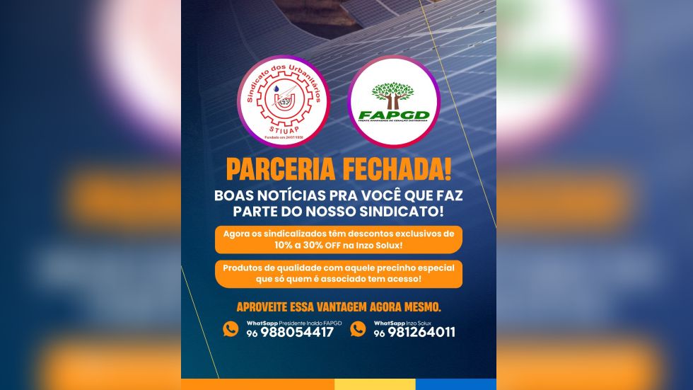 Você que é sindicalizado ao STIUAP agora tem CONDIÇÕES imperdíveis através da parceria da FAPGD, Frente Amapaense de Geração Distribuída e o Sindicato dos Urbanitários! 😍